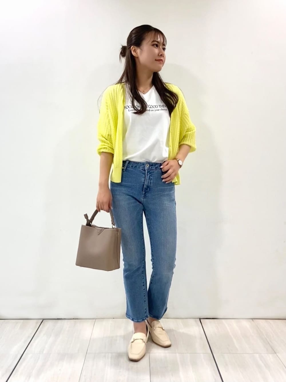 【yuri_157cm_店舗名I池袋西武NDIVIラージ】 イエロー×明るめのデニムで、春夏らしいカジュアルスタイリングに。 デニムはストレッチ抜群で、立ったりしゃがんだりがとてもしやすいです◎ 裾がやや広がっているセミフレアの形になっています。 【❤︎お気に入り】 画像、右下のハートマークを押すと簡単に見返すことができます。 登録宜しくおねがいいたします! 【Instagram:@indivi__official】 新作情報などお得な配信をしておりますので、ぜひチェックしてください。 Instagram ▶︎ @indivi__official