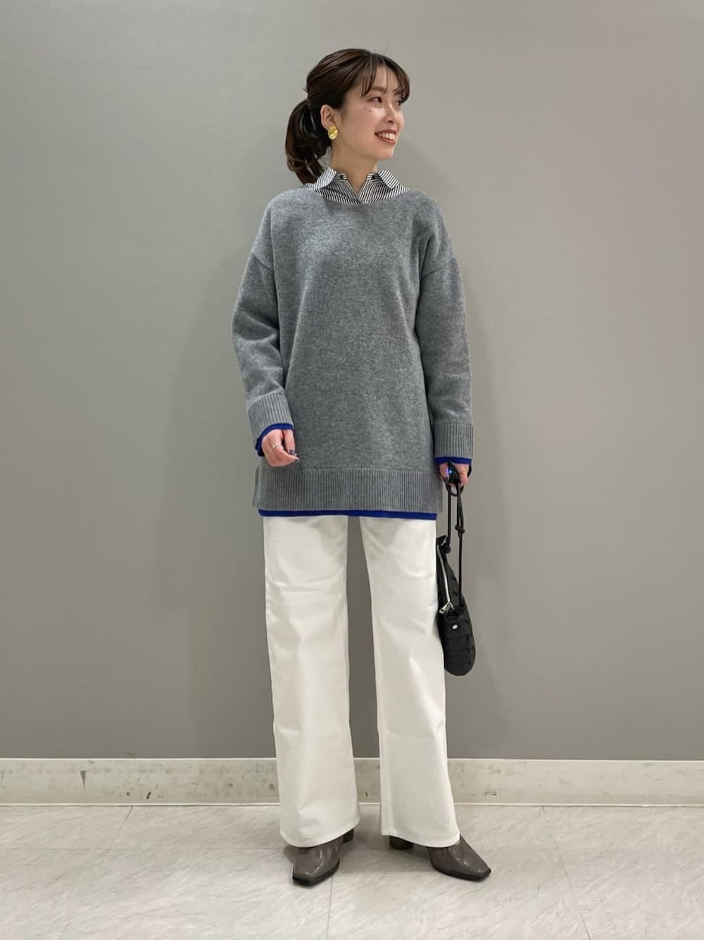 【ねね_160m_店舗名池袋西武INDIVI】 1枚で着るよりももっとおしゃれに映えるニット×シャツのレイヤードコーデ! 【ニット】 着用サイズ:38(M) 身幅大きめのゆったりニット。 ストンと落ちる生地感でボディーラインも拾わず○ 【パンツ】 着用サイズ:36(S) 太すぎないワイド幅で取り入れやすいです。 コットン素材で硬さもなく、ストレッチも効いて穿きやすさ◎ ただ、座りジワを気にする方にはオススメできません…! 【♥︎お気に入り】 ハートマークを押すと簡単に見返すことができます。スタッフ&コーデのお気に入り機能を是非ご活用ください♪ Instagram ▶︎ @indivi__official