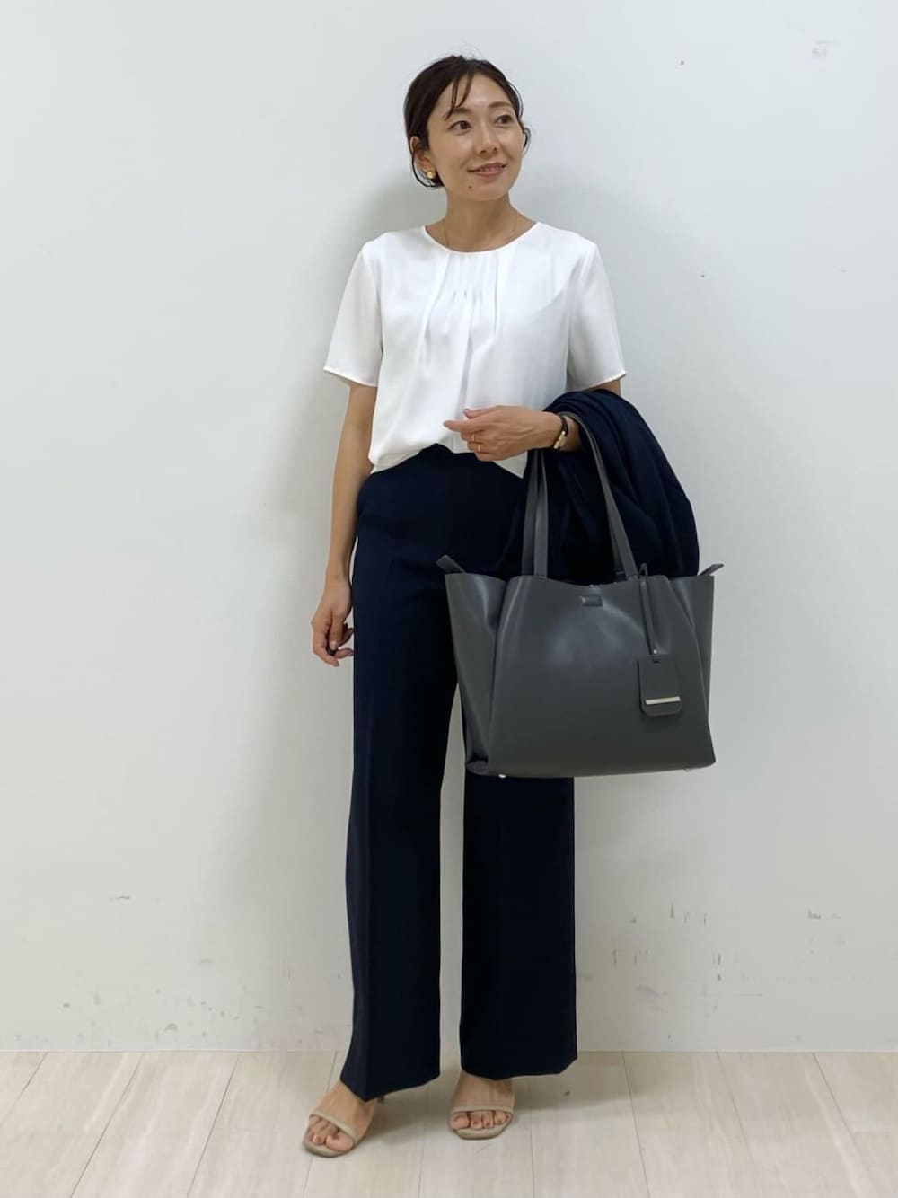 涼しく着られる夏のオフィススタイル♪♪ 【パンツ】 ヒップ周りがすっきりしていてきれい◎ 広がらないワイドパンツ♪足がスラっと見えますよ^ ^ 【ブラウス】 裏地が付いていて透け感はほとんど気にならなかったです。首開きも広すぎなくて着やすいです。 【ジャケット】 さらっとしたドライタッチで涼しく着られます^ ^ ヒップにかかるくらいのやや長め丈。細身ですっきりしたシルエットなのでスタイルアップして見えます♪ 《お気に入り》 お気に入りスタッフ&コーデ機能ができました! ♡マークでいつでもすぐ見返せます。 ぜひご活用くださいませ♪ 《Instagram : @indivi__official 》 新作情報などお得な配信をしておりますので、是非チェックしてみてください♪