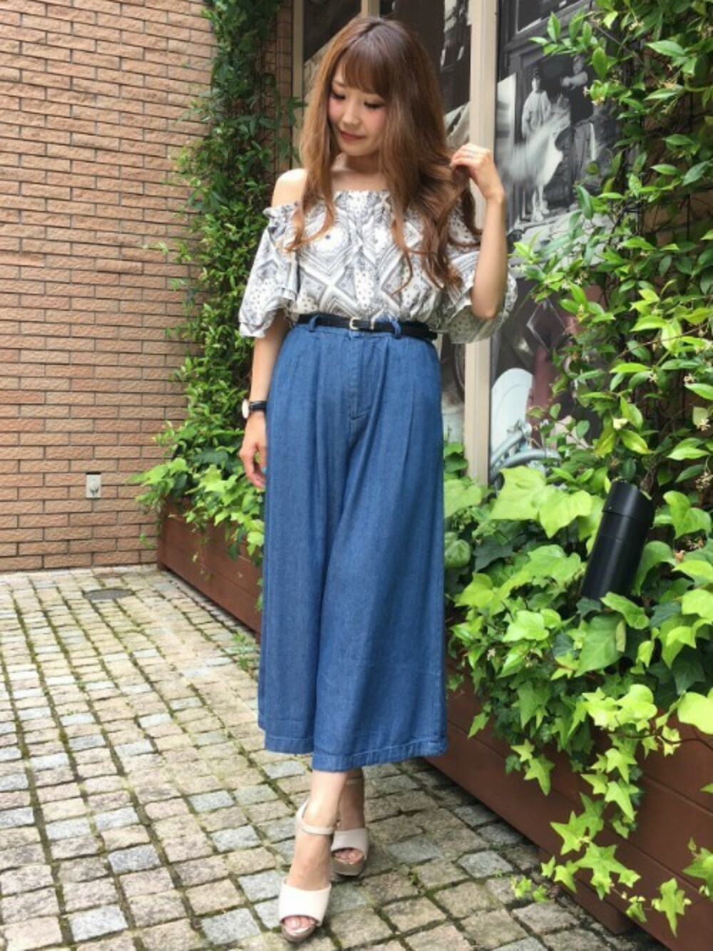 INGNI(イング)(INGNI 東京本社)のTシャツ/カットソー「バンダナ柄オフショルダートップス/レディース-2017SS-」を使ったコーディネート