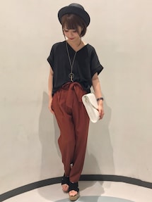 着回ししやすい黒シャツは 今年も必須のアイテムです♪ ボトムは柔らかい色味を合わせると より女性らしく黒を着こなせます! ニュアンスカラーのグレージュは 重たく見えないので夏におすすめのカラーです。