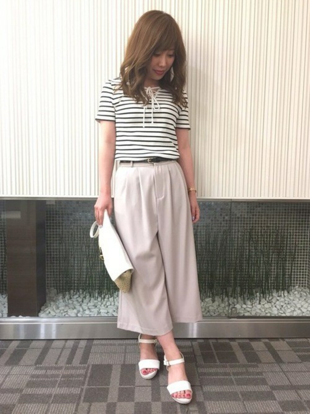 INGNI(イング)(INGNI 東京本社)のTシャツ/カットソー「ワイドリブ2WAYレースアップトップス/レディース-2017SS-」を使ったコーディネート