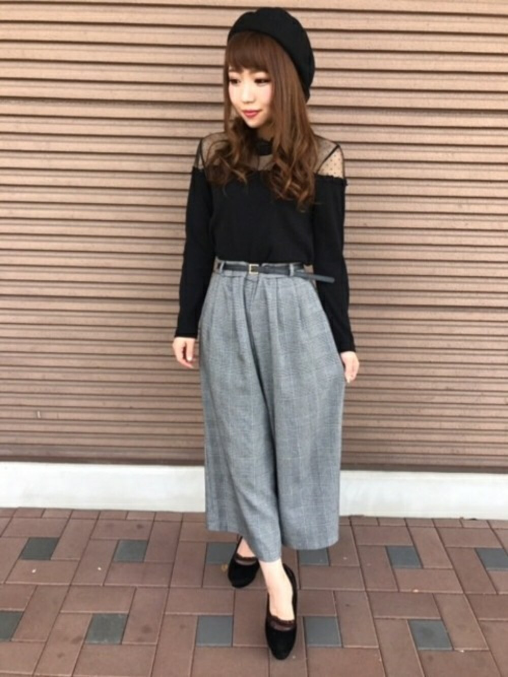 トレンドのグレンチェックガウチョはウエストがゴム×柔らかい素材で履き心地抜群です。 長すぎず、小柄な方でも丁度いい丈感に!タイトめなトップスをINしてメリハリをつけ、小物も黒でまとめた大人可愛いモノトーンコーデにしてみました。