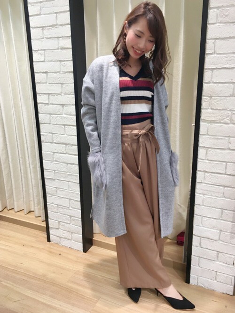 INGNI(イング)(INGNI 東京本社)のニット/セーター「12GマルチボーダーリブVネック/レディース-2017AW-」を使ったコーディネート