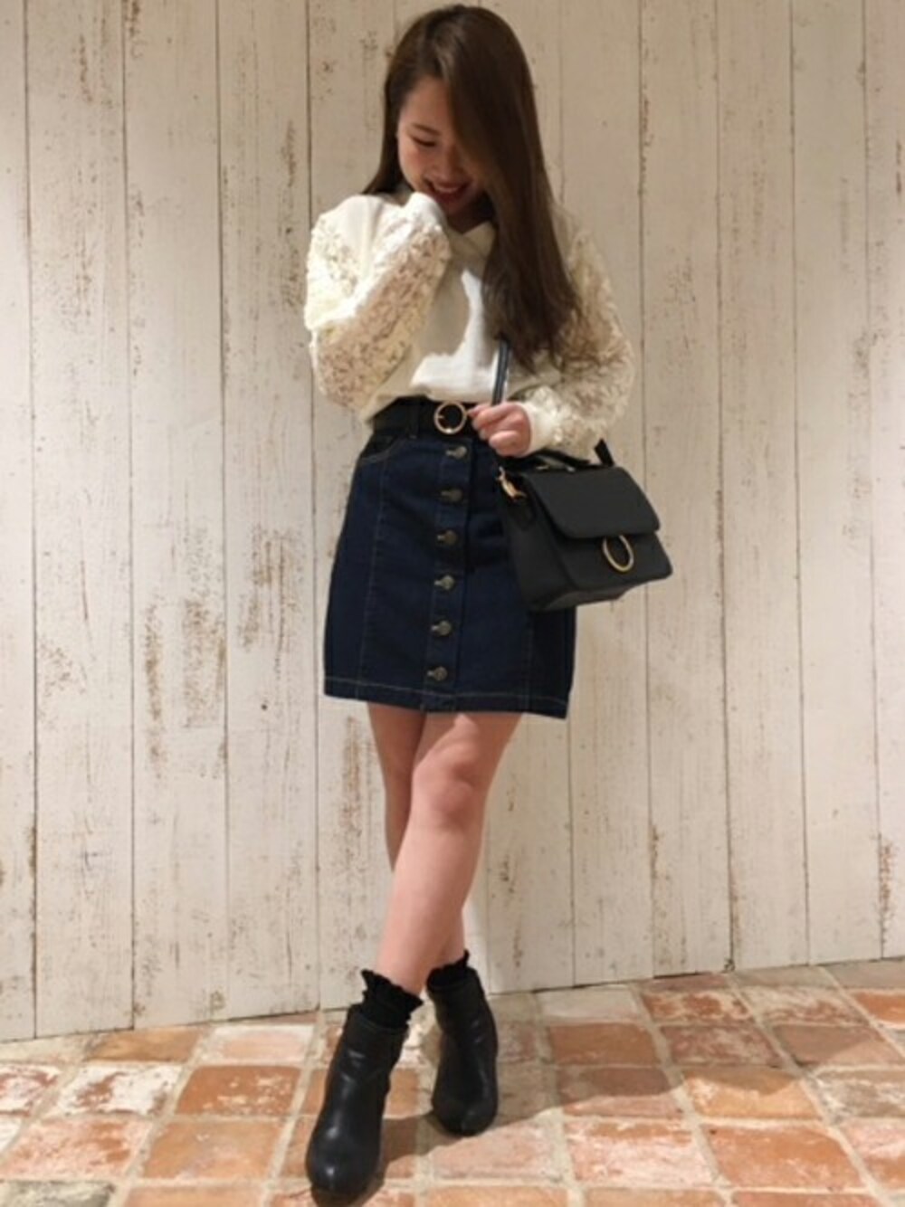 袖がレースになったトップスは素材がポリエステルで、着心地がサラッとしていてとても着やすいです。 レースが施された可愛らしいトップスに、デニムを合わせることで女の子らしさは残しつつ甘々になりすぎないコーデにしました♪