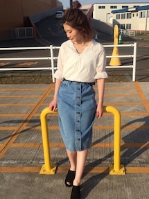 オフショルのゴムがしっかりしているので、体にフィットします!ウエストにもゴムが入ってるのでメリハリあるシルエットに☆ 大人気のパンチングトップスで、これから夏にぴったりなコーディネートに♩デニムで合わせてカジュアルに着こなすのも可愛くてオススメです! ヘルシーな肌見せが叶うコーディネートです☆