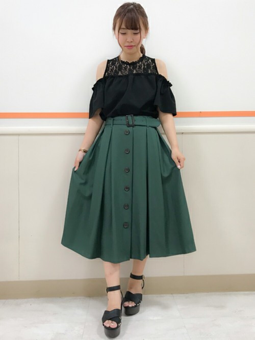 INGNI(イング)(INGNI 東京本社)のTシャツ/カットソー「ヨークレース肩あきトップス」を使ったコーディネート