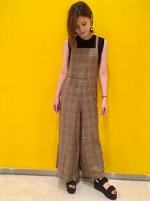 着心地が軽くてツルっとした肌触りでとっても着やすいラッフルデザインのスキッパーシャツです◎ ボトムに入っているカラーをトップスにも使い、まとまりのあるスタイルにしました。