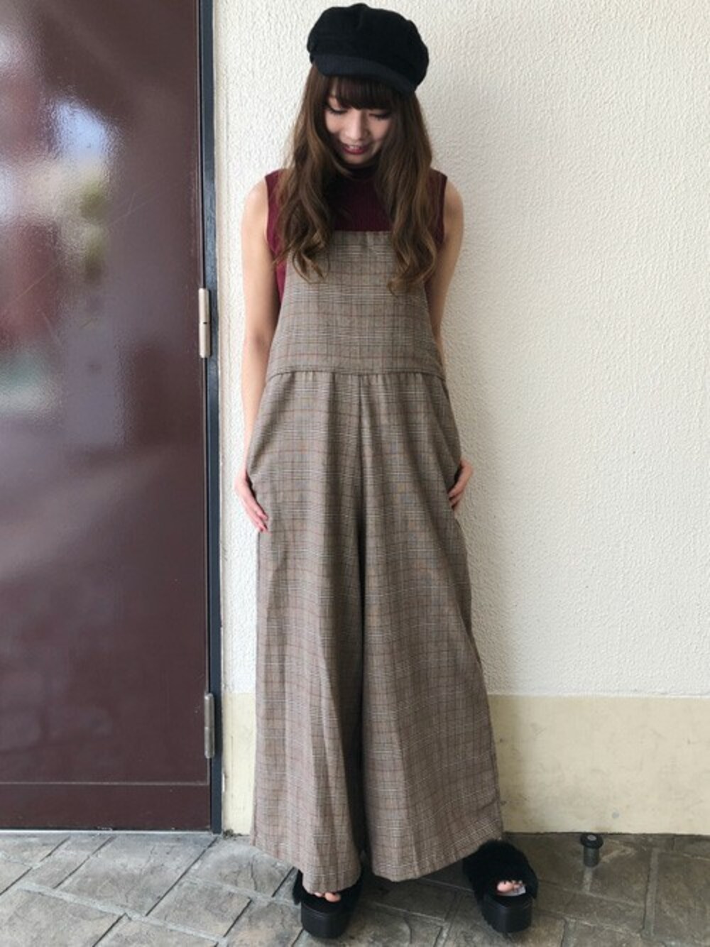 秋らしいチェック柄が可愛いサロペットです♪インナーはオフホワイト・クロはもちろん、ボルドーやブラウンなどを合わせて頂いても今年らしい可愛いコーデに♪
