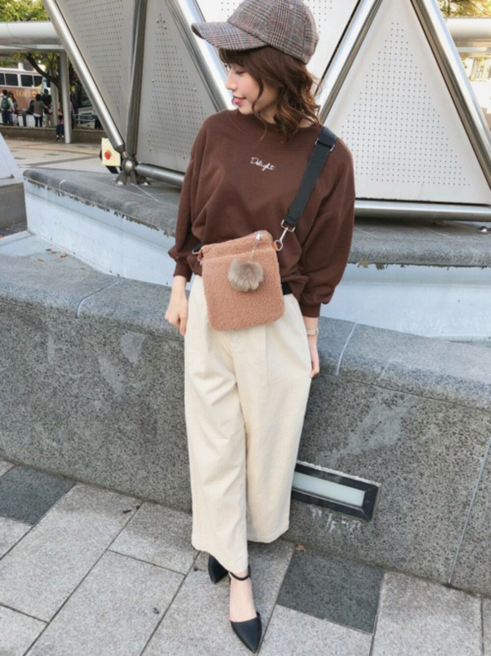 動きやすさ抜群なスウェットは、着心地も楽です!オフショルなのでカジュアルになりすぎず、ワンポイントのちびロゴがトレンド感あります! パンツにもスカートにも合わせられるので、着回し力もあります!コーデュロイ合わせで、より秋っぽくまとめてみました!
