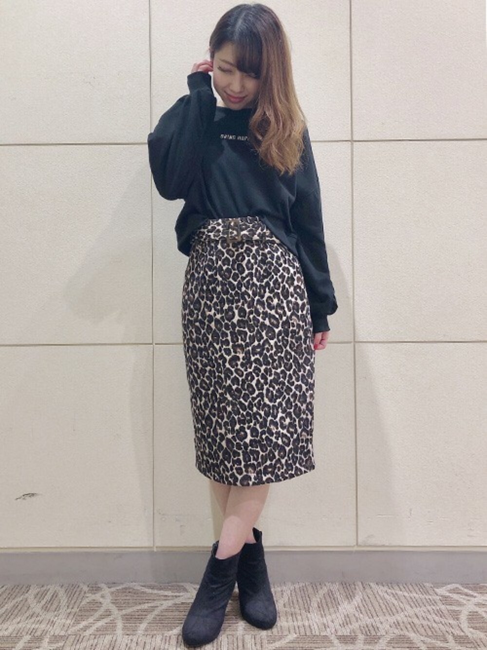 今年流行りのヒョウ柄をアクセントにしました。 ボルドーなど冬カラーのアイテムをプラスしても可愛いです!