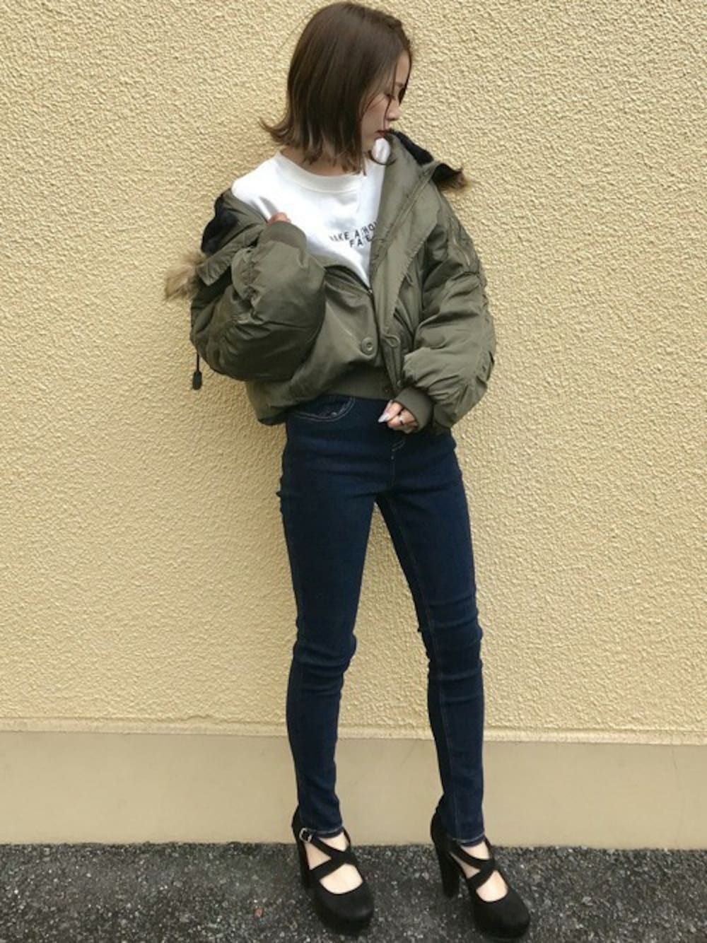 スキニーはストレッチがかなりきいていて動きやすいです。N2Bは動きやすく、1枚でかなり暖かいです。 N2Bを使ったカジュアルコーデです。インナー×ボトムをシンプルにまとめてn2bのカーキをポイントにおきました!1枚でかなり暖かいのでオススメです!