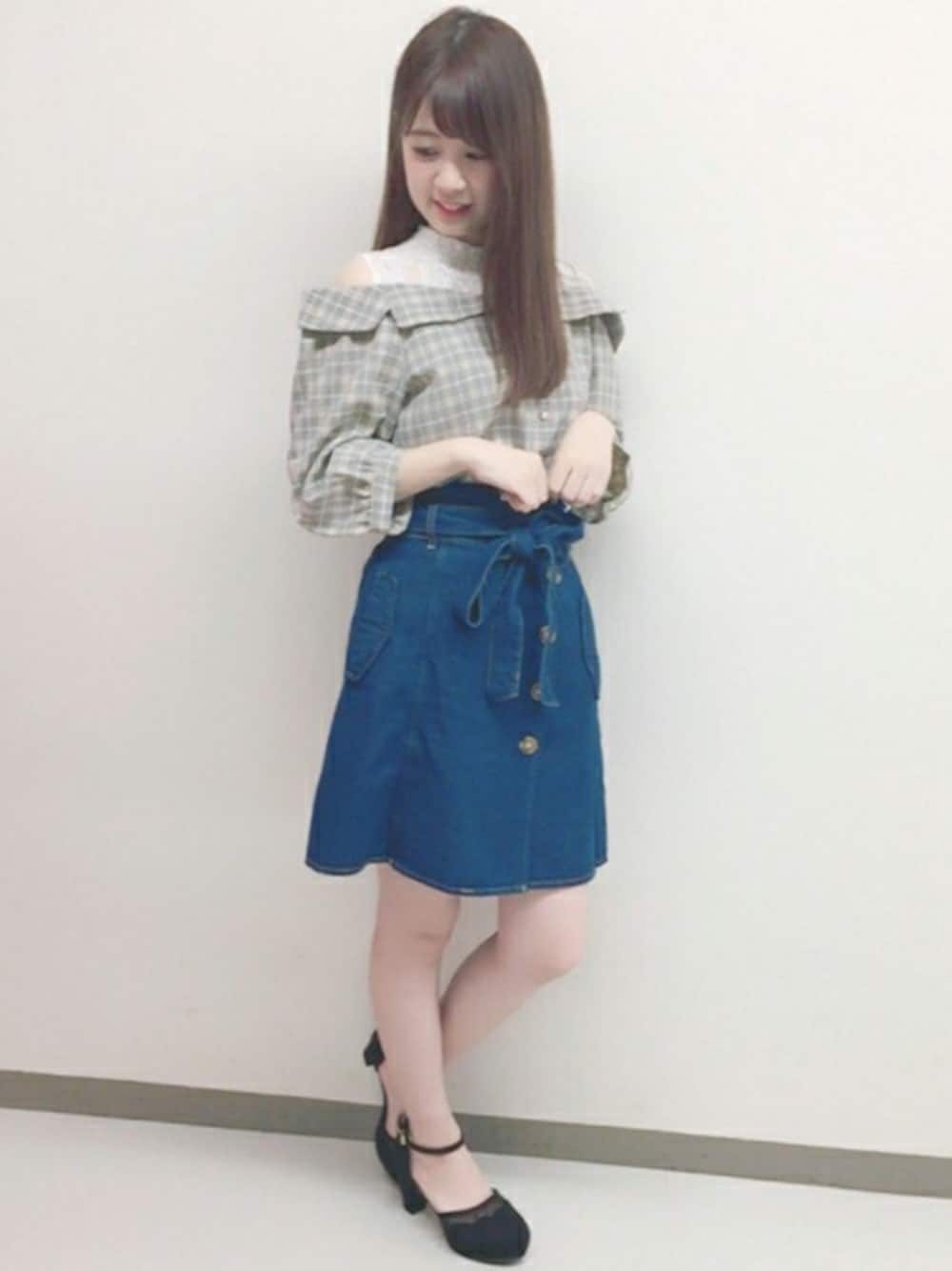 INGNI(イング)(INGNI 東京本社)のシャツ/ブラウス「レースレイヤーチェック柄オフショル/ブラウス」を使ったコーディネート