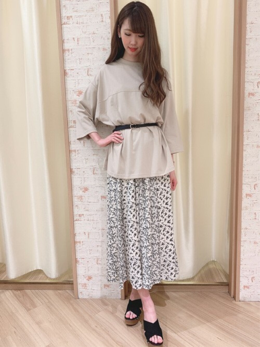 ダボッとしたシルエットのチュニックは、スキニーと合わせるのは勿論、今年は花柄のスカートと合わせることにより春らしく着こなせます!