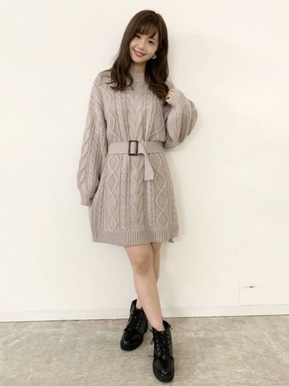 INGNI(イング)(INGNI 東京本社)のワンピース「ベルト付モックネック/ケーブルニットワンピース」を使ったコーディネート