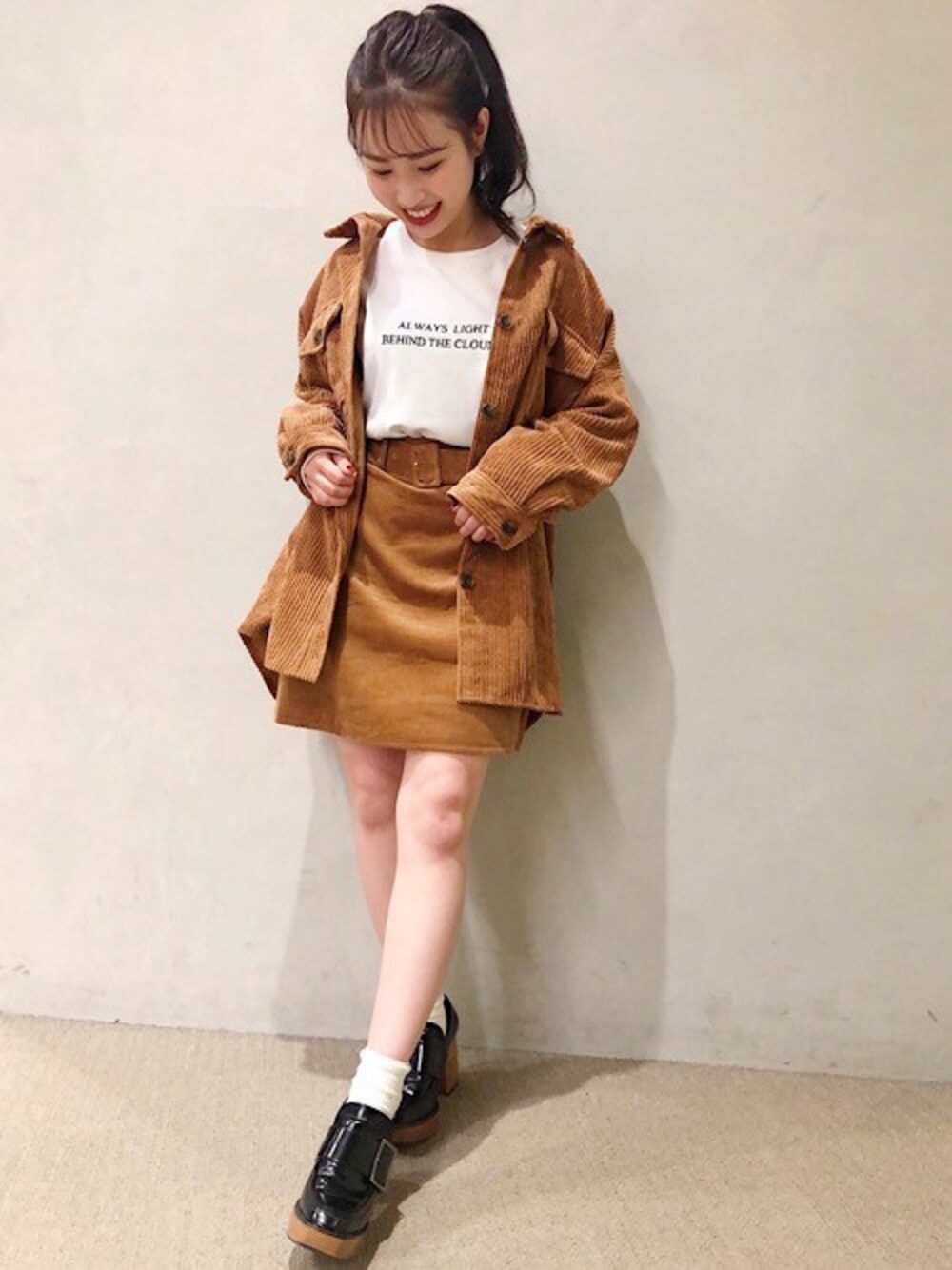 今年注目のコーデュロイシャツは、シンプルな着こなしでもバッチリ決まる優秀アイテムです!今回はセットアップ風に合わせ、ブラウンコーデにしました◎