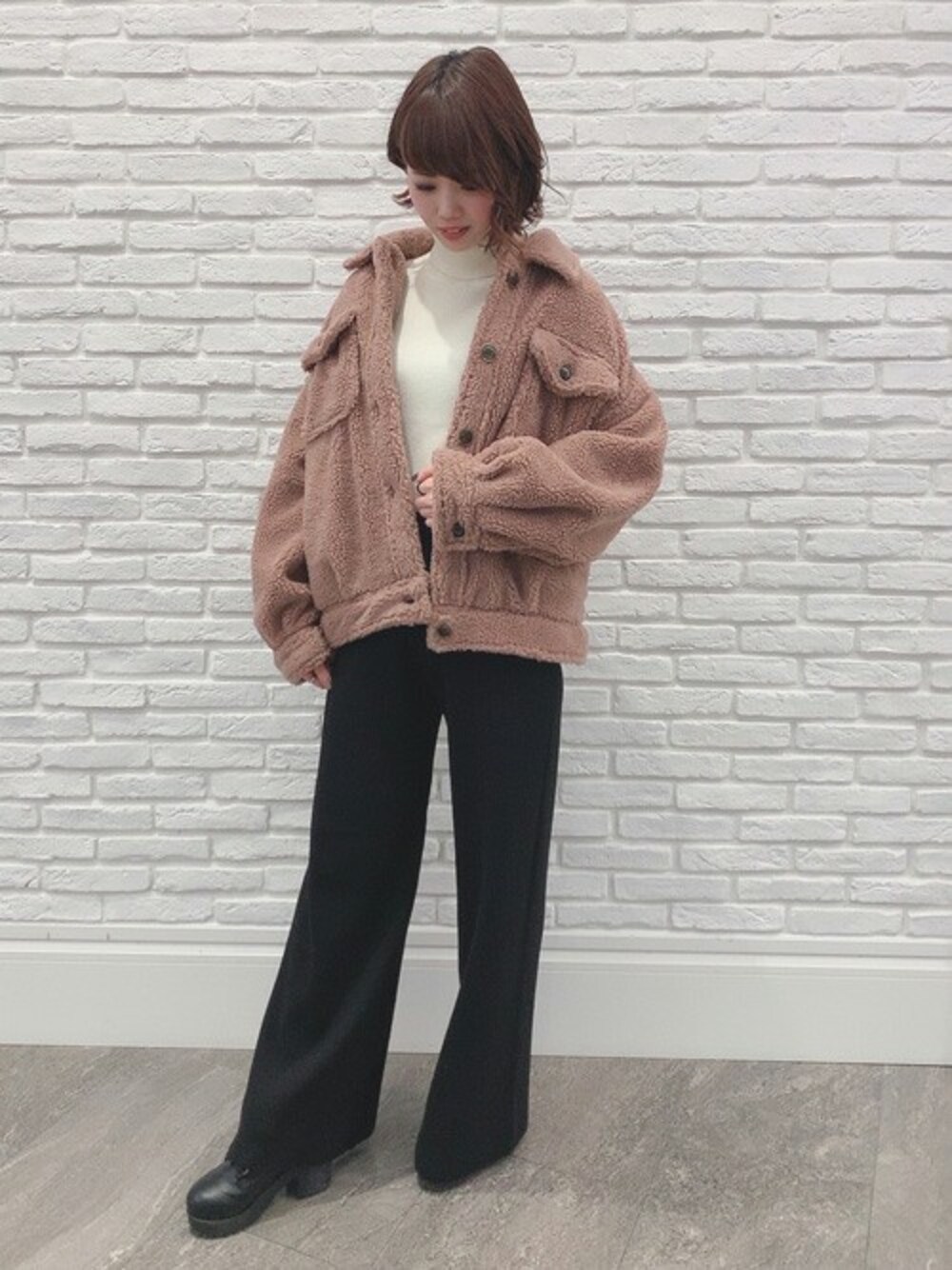 今季注目のボアCPOで、羽織るだけで可愛さ倍増します♪ニットリブワイドと合わせてスタイルアップ効果も取り入れたコーディネートにしてみました
