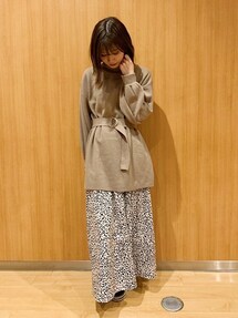 今年トレンドのニットは柔らかい肌触りで着心地抜群です。サックスに花柄プリーツスカートを合わせ可愛すぎない大人コーデに。