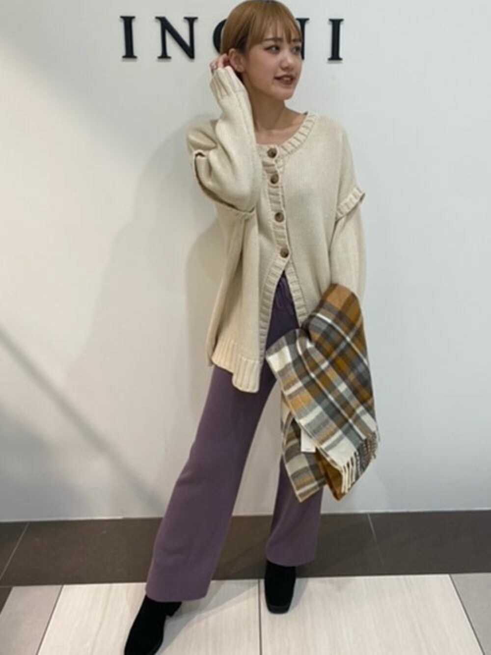 INGNI(イング)(INGNI 東京本社)のその他パンツ「ニットリブストレートパンツ」を使ったコーディネート