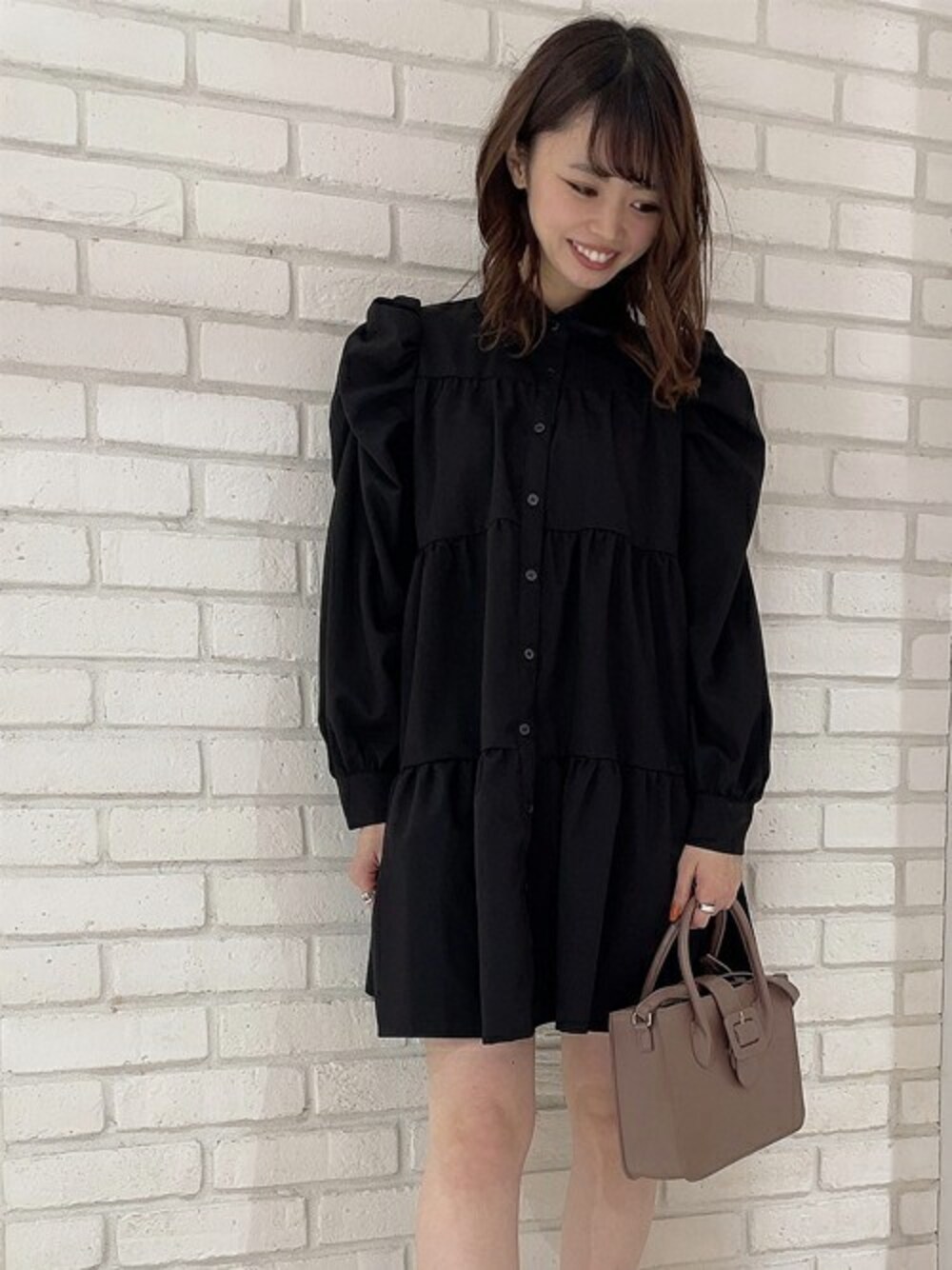 注目のティアードワンピに襟付バージョンが登場!丈感少し短めなので見えても可愛いショートパンツ等履くのをおすすめ致します!