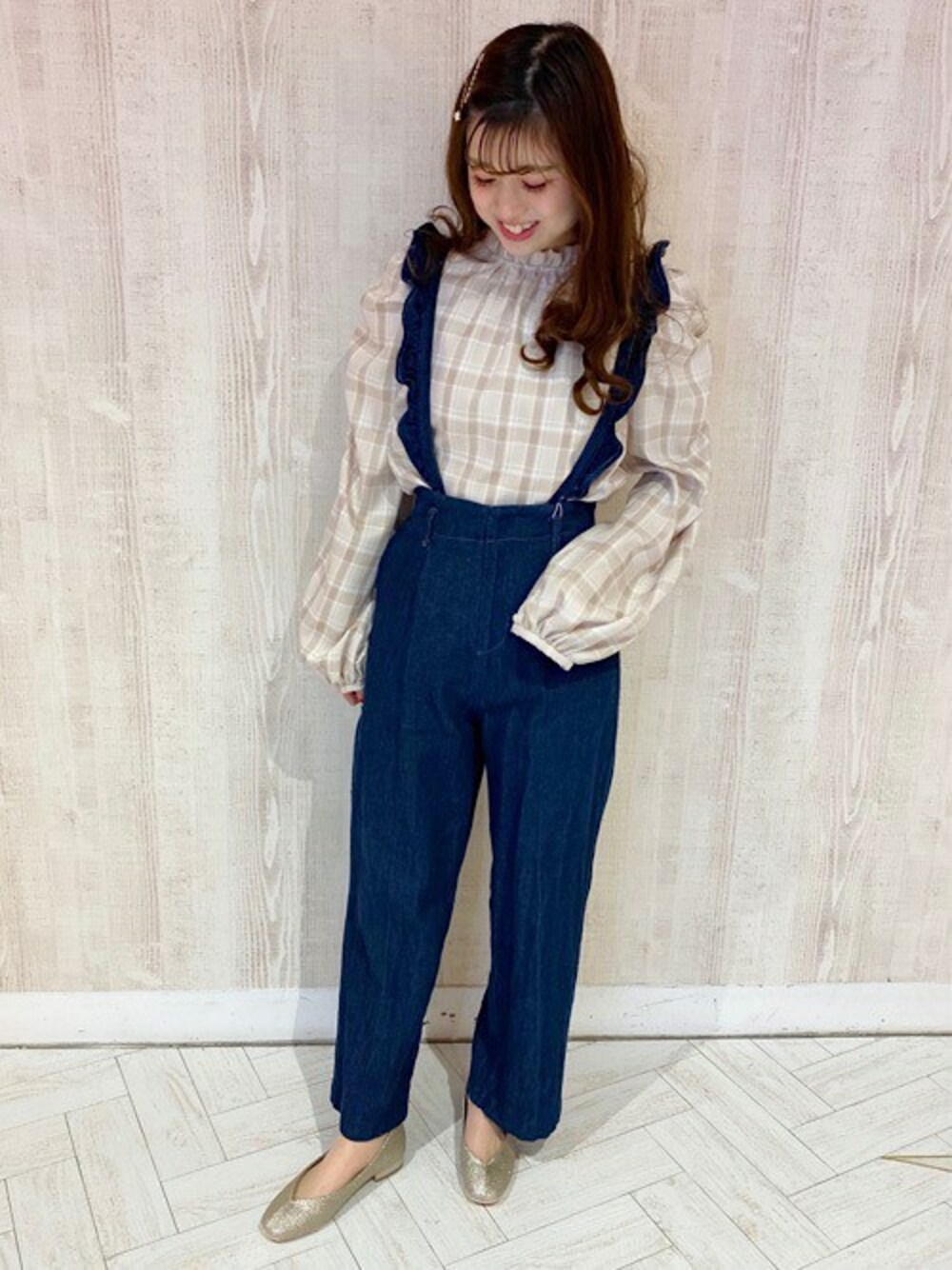 フリルサスがかわいいパンツはブラウスと合わせて春コーデに!