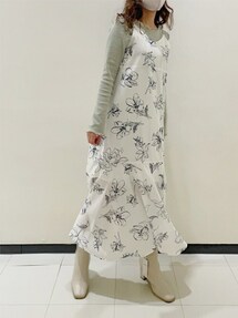 この冬流行ったロングブーツも爽やかな白のティアードOPと合わせれば春先まで使えちゃいます!アウターを着れば今から取り入れられる春物コーデに。