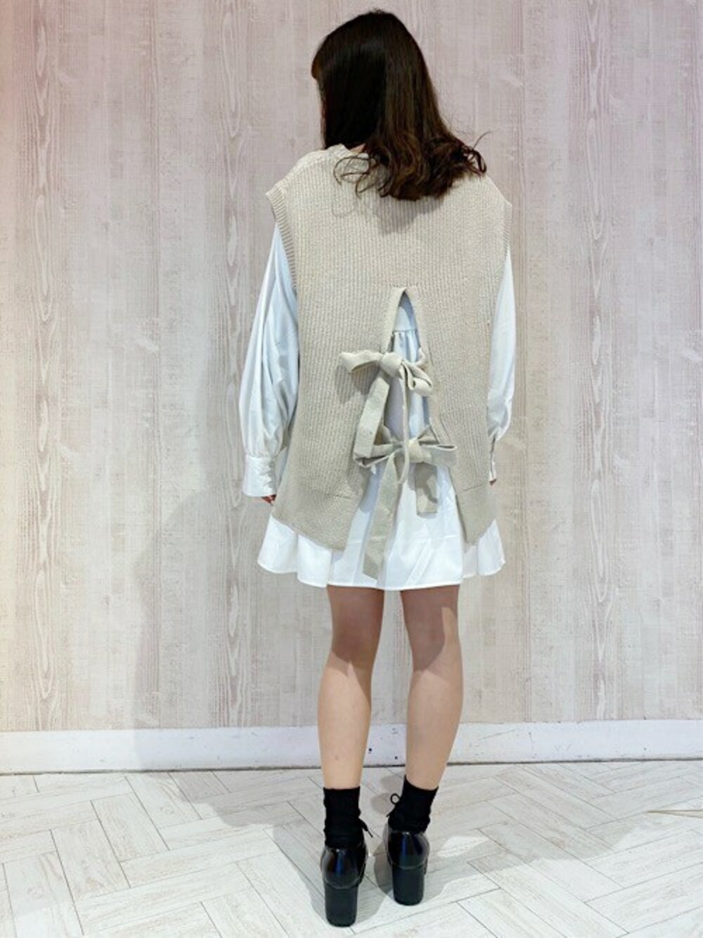 INGNI(イング)(INGNI 東京本社)のニット/セーター「【セットアップ】綿混Backリボンニットベスト+ティアードブラウス/SET」を使ったコーディネート