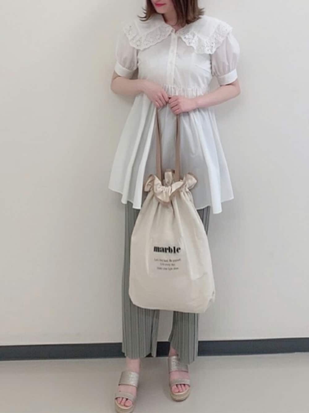 シンプルなデザインにBIG衿が付いておりフェミニンに着こなせます!プリーツパンツと合わせゆるっと可愛くまとめました☆