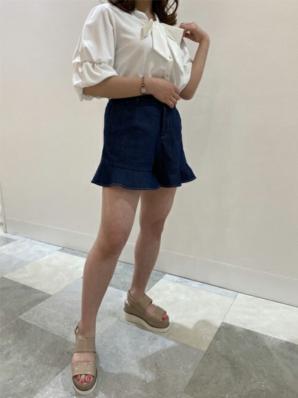 INGNI(イング)(INGNI 東京本社)のシャツ/ブラウス「2段パフ袖ボウタイブラウス」を使ったコーディネート