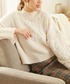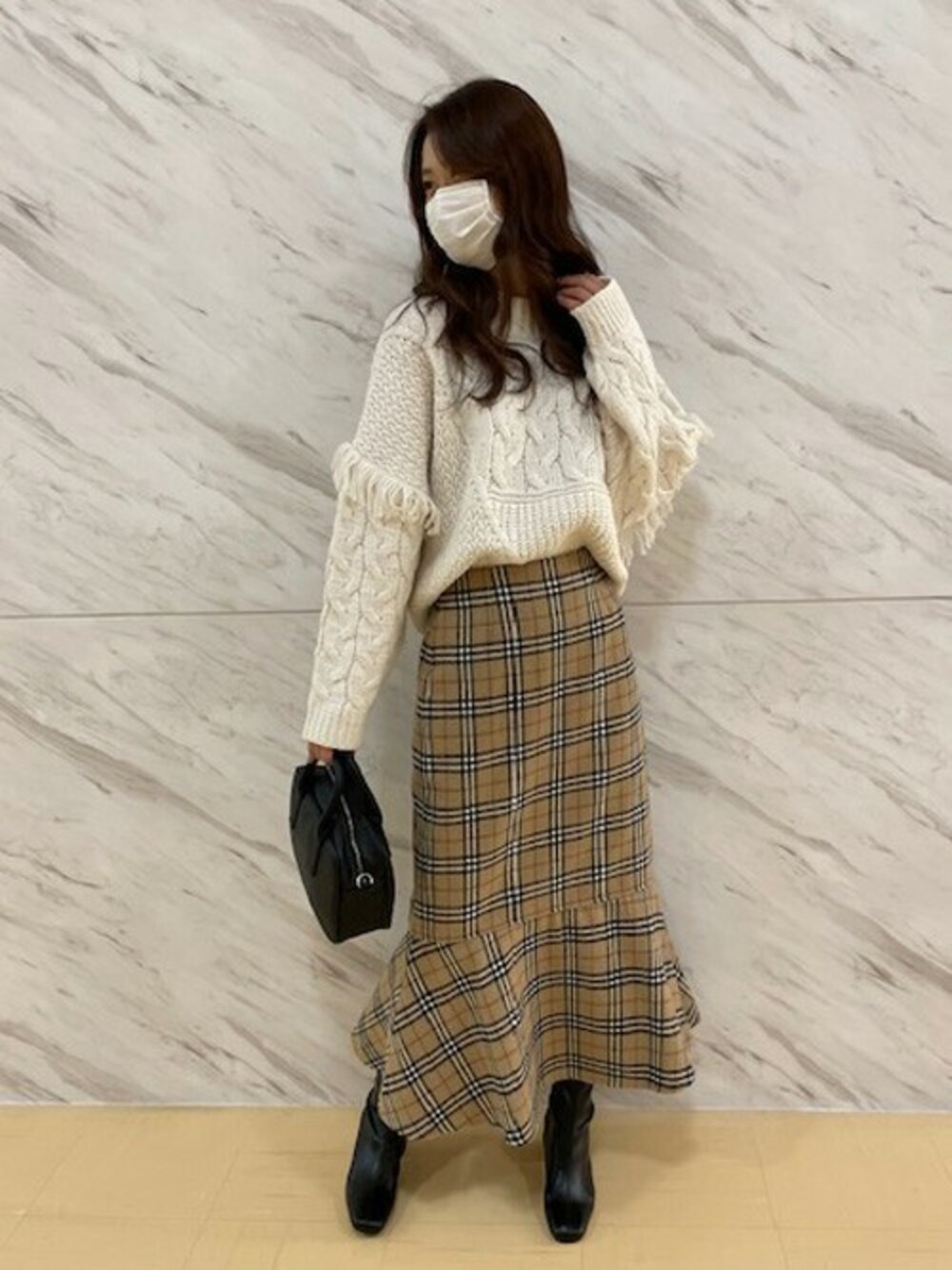 袖のフリンジがアクセントでころんとした形のニットが絶妙に可愛いです!丈が少し短いのでハイウエストのボトム合わせるとバランス良く着こなせます♪