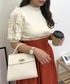 お袖のフリルデザインが可愛らしいので、カラーを大人にまとめバランスを取りました。