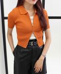 ショート丈のニットにカーゴパンツを合わせることでメリハリのあるスタイルに。上下にZIPが付いてるので、お腹をチラ見せするのも可愛いです。