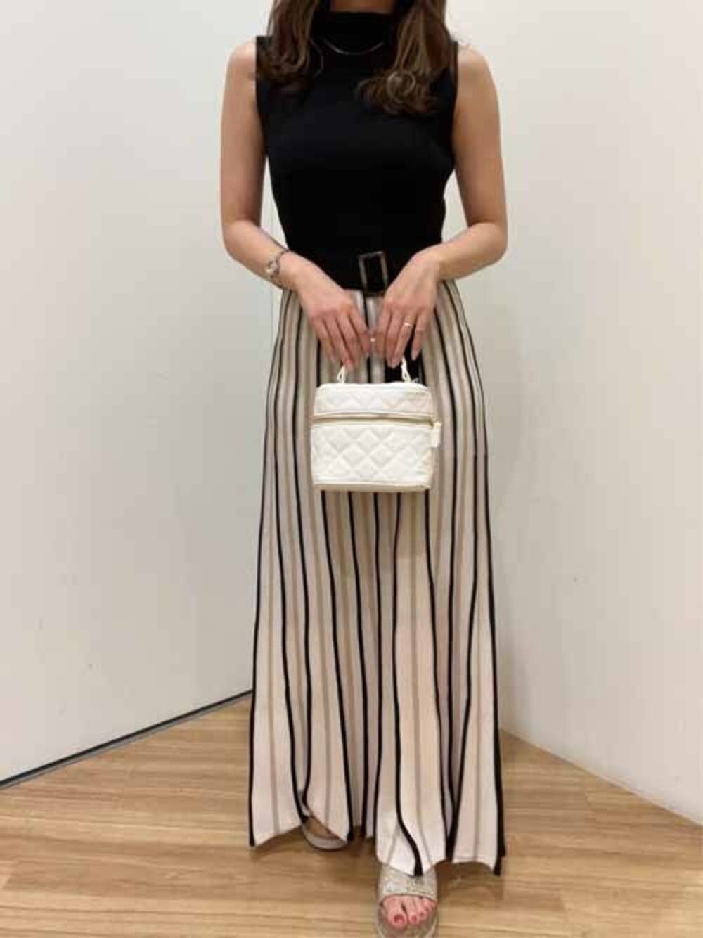 ウエストから広がる配色デザインとベーシックな色合いが上品な女性らしい印象を与えてくれます。