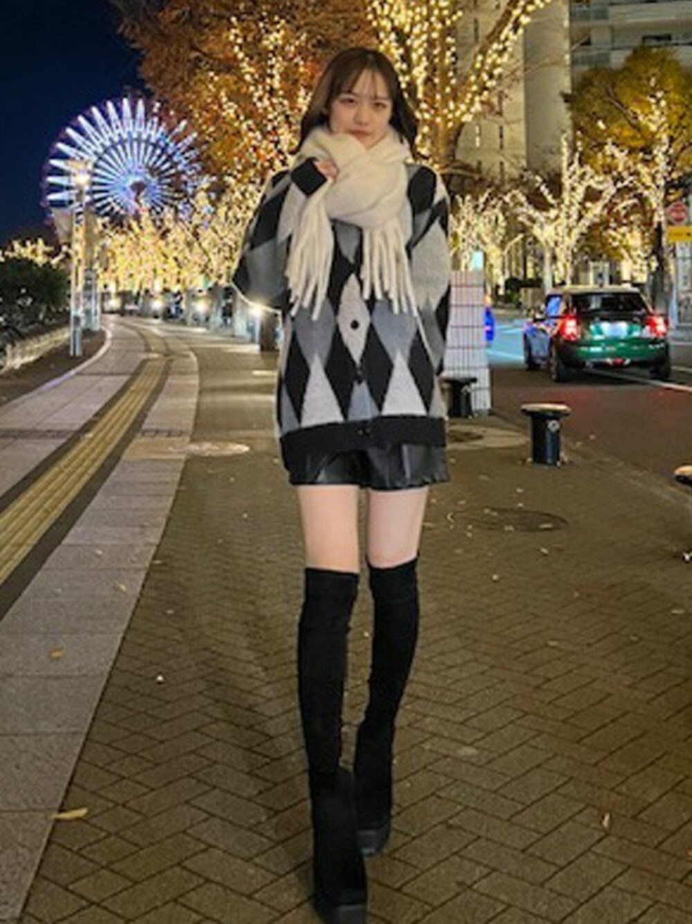 INGNI(イング)(INGNI 東京本社)のカーディガン/ボレロ「モヘアタッチダイヤ柄カーディガン」を使ったコーディネート