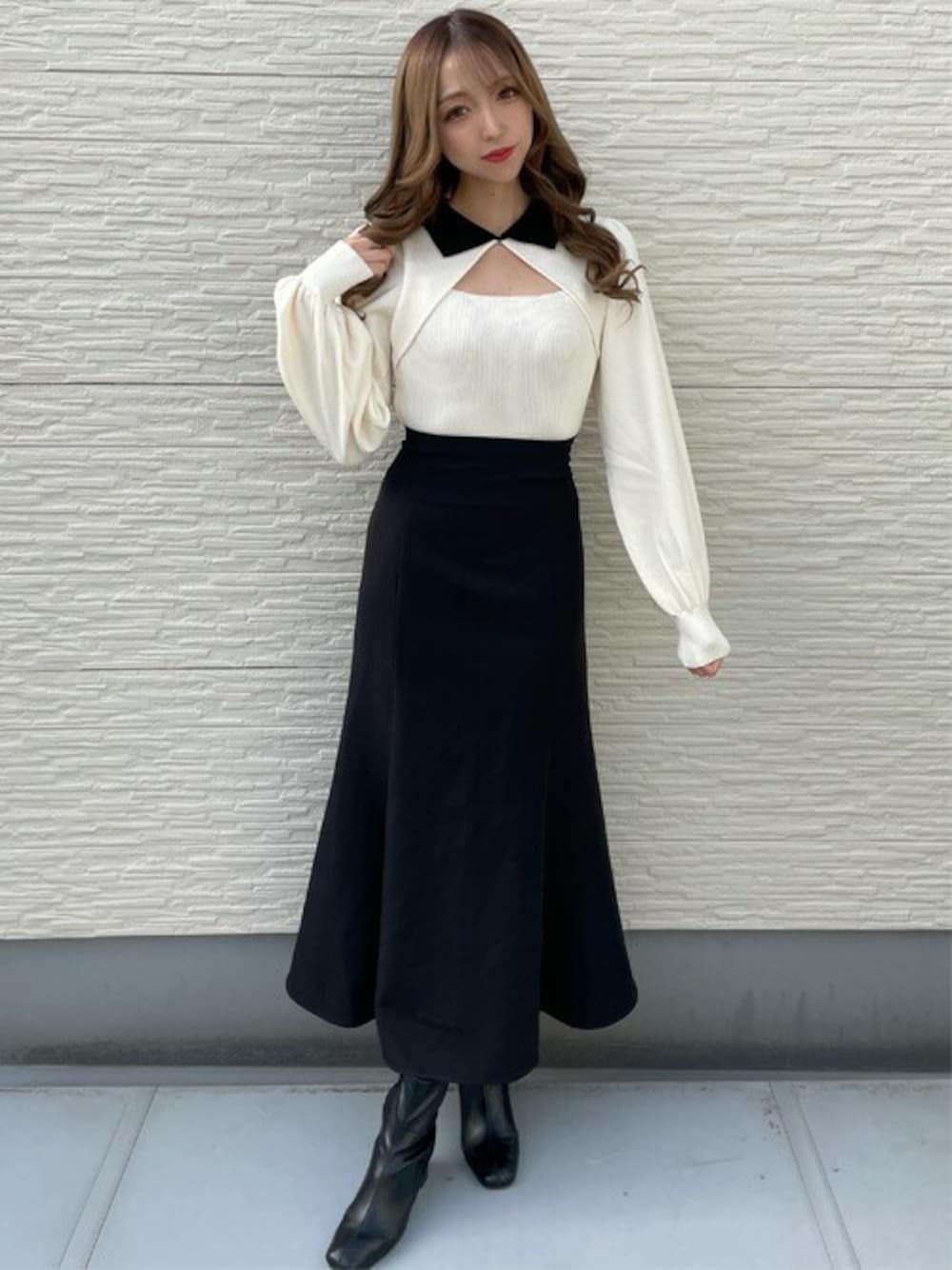 INGNI(イング)(INGNI 東京本社)のニット/セーター「襟付デコルテオープンニット」を使ったコーディネート
