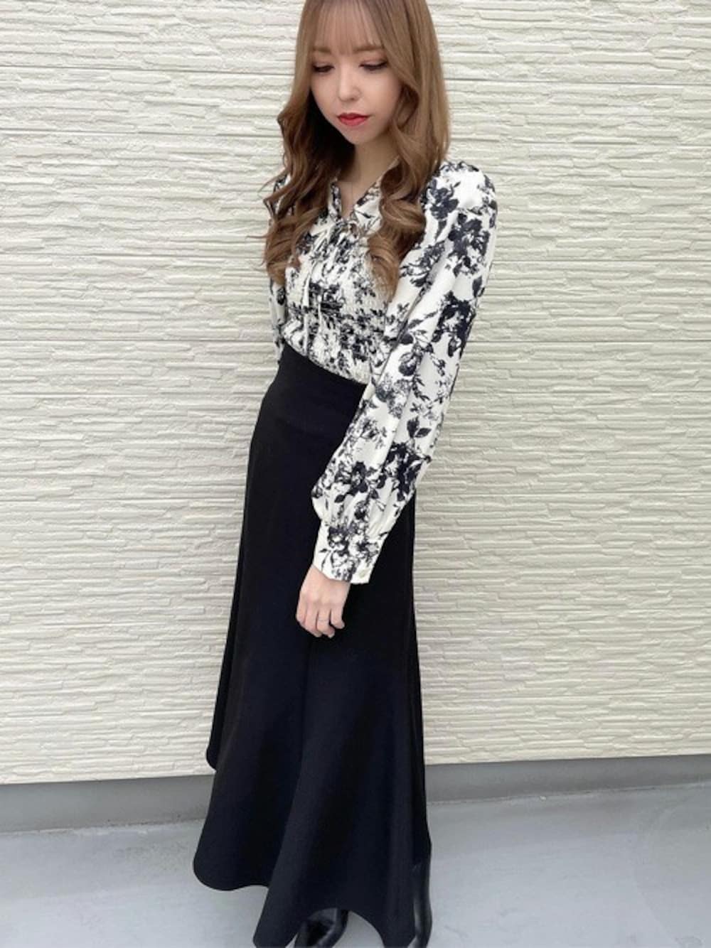 単色花柄がとっても大人っぽい上品なブラウスはロングスカート合わせで綺麗めコーデにおすすめです。