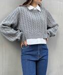 INGNI(イング)(INGNI 東京本社)のニット/セーター「シャツドッキングショート丈ケーブルニット」を使ったコーディネート