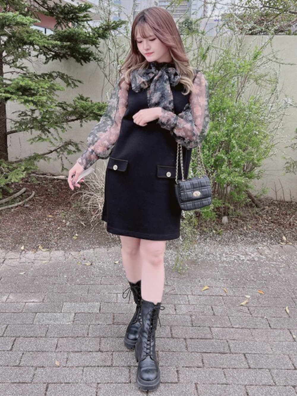 INGNI(イング)(INGNI 東京本社)のシャツ/ブラウス「花柄シアーハイネックボウタイブラウス」を使ったコーディネート