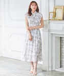 白地にグレーの花柄が大人っぽいノースリーブワンピースです。袖のフリルで気になる二の腕カバーも◎小物も淡色で合わせてトレンドっぽく。