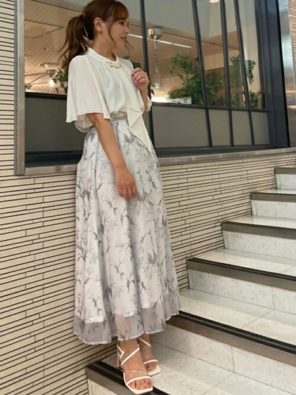 透明感のあるオーガンジーのスカートは大人可愛いコーデにぴったりです。足元が少し透けているので低身長さんでもすっきりと足首を見せることができます。