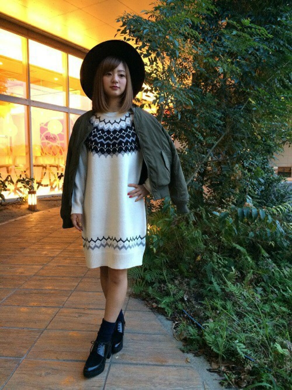 1枚でゆったり着れるニットワンピースなので安心感抜群!今年トレンドの求心柄は顔周りを華やかにしてくれます。 今年トレンドの求心柄ワンピースにハットでメリハリをつけると、一気に大人可愛いを手に入れられる欲張りコーデの完成!