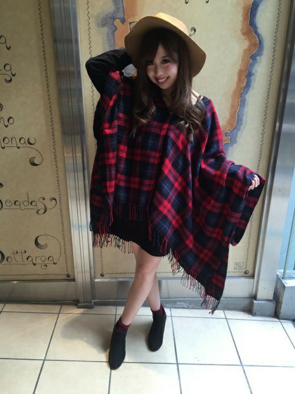INGNI(イング)(INGNI 東京本社)のポンチョ「チェック柄ストール/ポンチョ-2015AW-」を使ったコーディネート