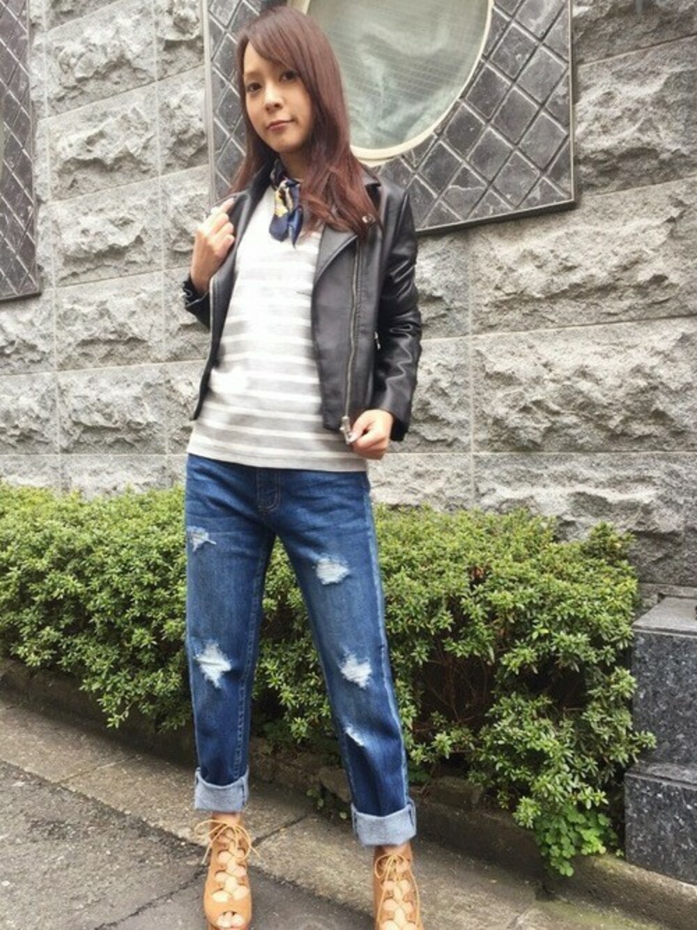 柔らかい素材でサラッと羽織りやすいライダースは、ベーシックアイテムとしても使いやすく、デニムアイテムとの相性も抜群です。 首元にストールを巻くだけで、華やかな印象になりますよ★