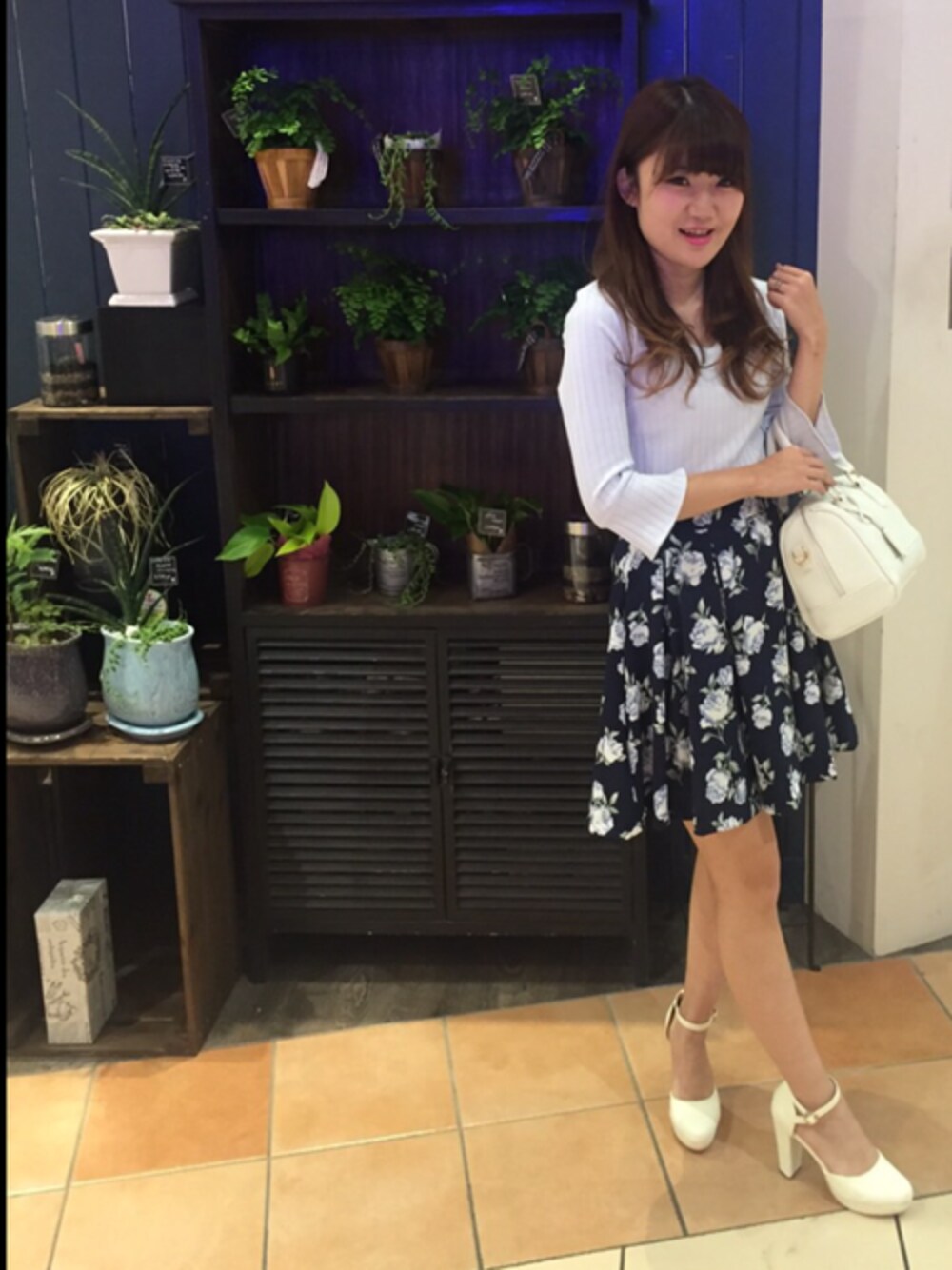 袖口とデコルテのあきが女性らしくキレイに見えるトップスに、優しい花柄が可愛いスカートを合わせれば、春のデートコーデの完成です! 腰周りのタックによりスカートのフレア感が出るので、足もキレイに見せてくれます ☆