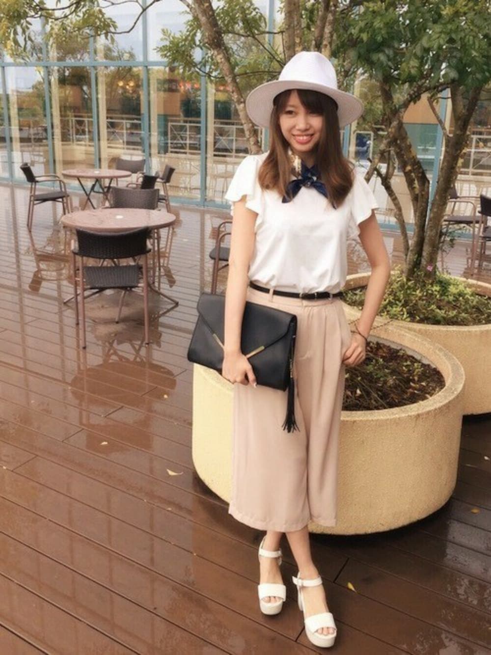 ゆったりデザインで履きやすいガウチョパンツ!ベルト付なので、大人っぽくお使い頂けます!TOPSは袖フレアを合わせる事で可愛さを+α☆☆