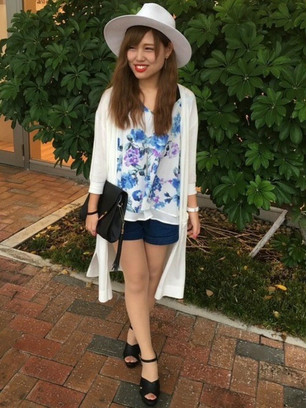サラッとした着心地のTOPSは発汗性◎。華やかな花柄でコーディネートのスパイスに! ショートパンツの様に短い丈のボトムにロングカーディガンを合わせバランス良く♪” 鮮やかなブルーの花が夏を思わせる先取りコーディネートに変化させます.+°*"