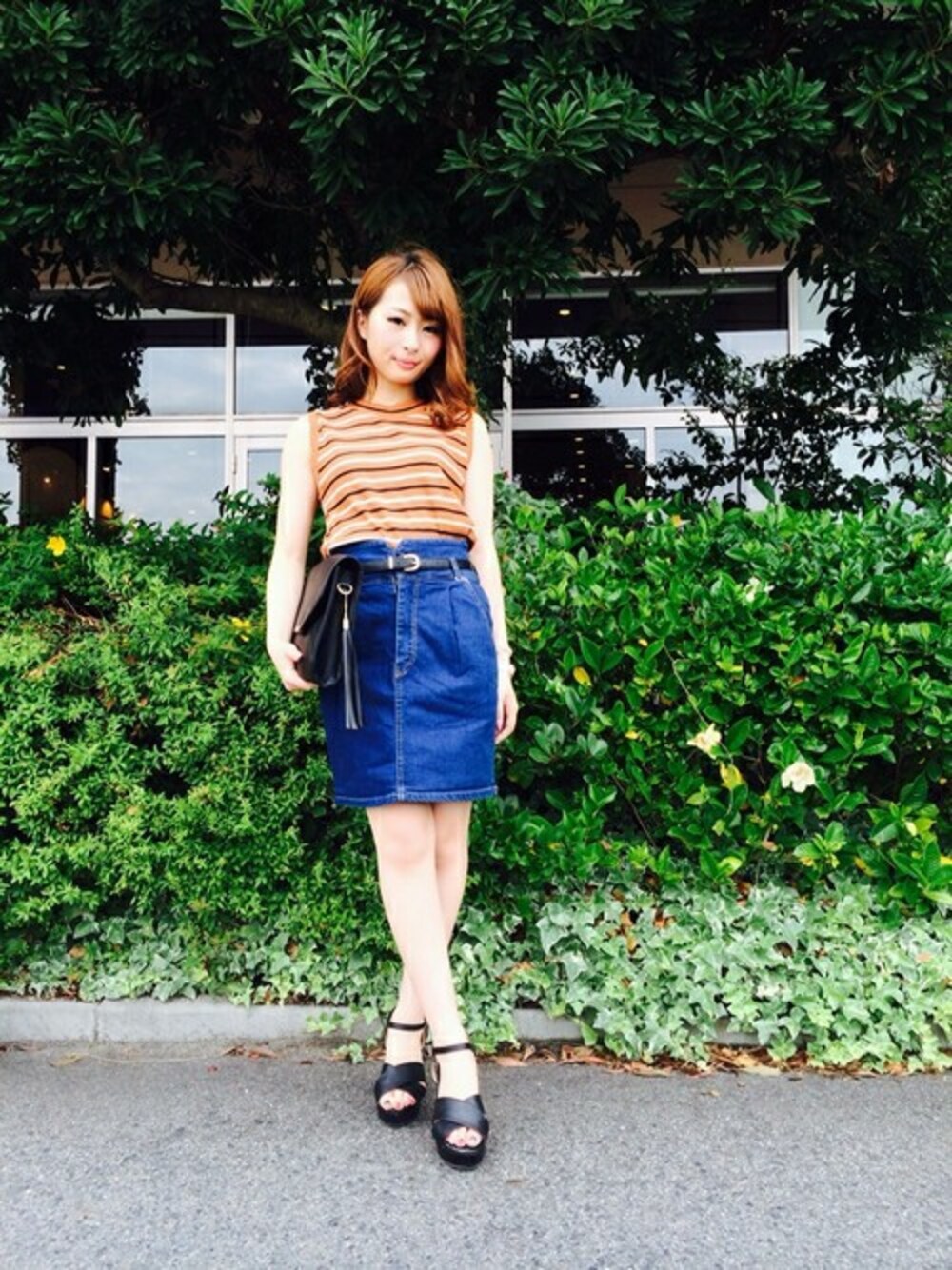 INGNI(イング)(INGNI 東京本社)のTシャツ/カットソー「イレギュラーテレコマルチボーダーハイネックノースリ-2016SS-」を使ったコーディネート