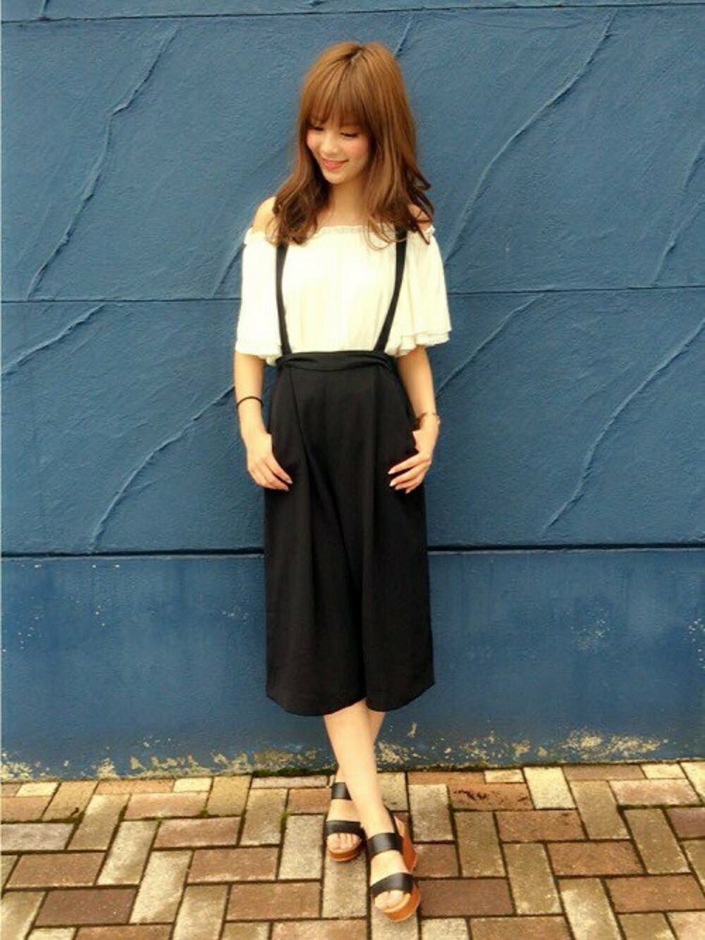 今大人気のオフショルTOPSはシフォン素材で肌触りもよく大人っぽく着て頂けます♡肩をださずスモックにすると可愛らしくも着れる優れもの♡ 更に人気のサス付スカーチョ合わせで周りとは一味違うトレンドコーデに♡