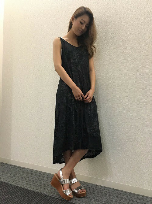 リーフ柄が施されたサラッと着やすいタンクワンピです。 1枚でリゾートな夏らしいワンピースです。