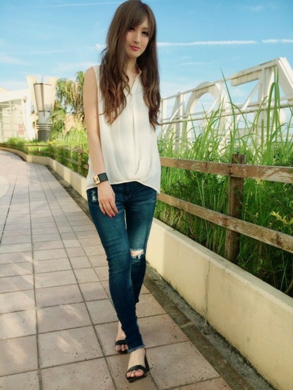 サラッとした軽やかな着心地のシャツは、夏を爽やかにすごせるアイテム! シンプルなスキニーパンツもクラッシュ加工+裾フリンジカット加工でアクセントのある着こなしに♪”